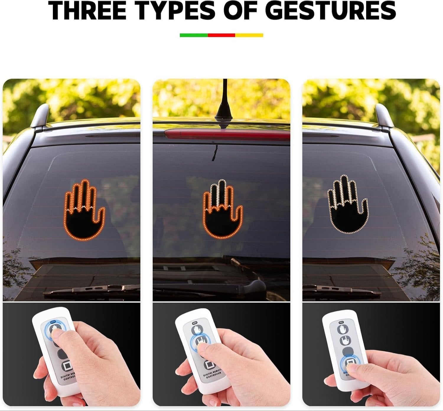 Car Finger Light With Remote 3 In 1 Light Up Finger LED Hand Gesture For Back Window